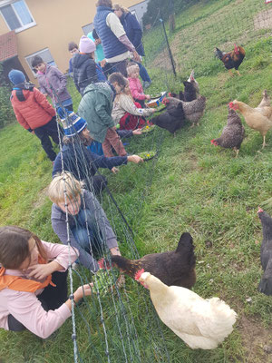 entdecken: Sie bestaunten das lebhafte Treiben der Hühner und streichelten die kuscheligen Schafe. Ein besonderes Highlight war, dass sie sogar die großen, gemütlichen Kühe mit frischem Heu